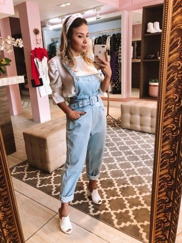 Look romântico com jardineira;