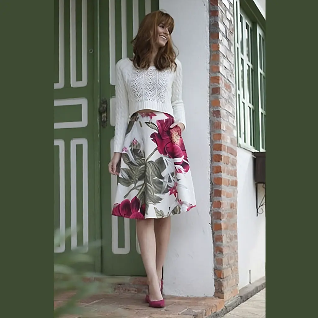 Saias de tecidos leves ou estampadas: Ótima opção para um armário cápsula romântico, especialmente as de tecidos leves, como seda ou algodão, ou as estampadas. Elas podem ser usadas com camisetas básicas ou blusas mais elaboradas e são perfeitas para o verão.